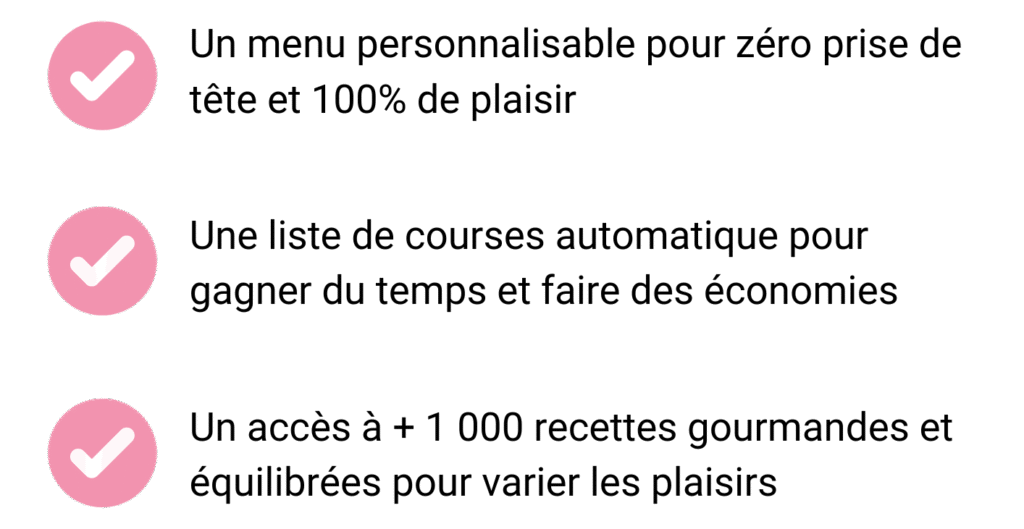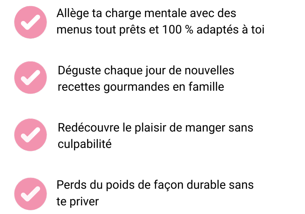 Et perds en moyenne 4kg par mois, sans effort grâce à des menus gourmands, simples et pensés pour toi