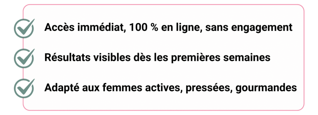 Et qu’elle a permis à plus de 7 000 femmes avant toi, de perdre en moyenne 4kg par mois en mangeant de tout et sans frustration…
