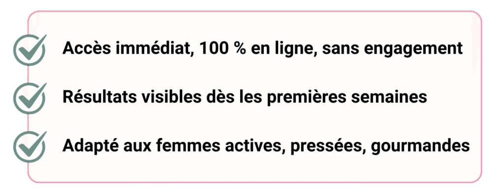 Que tu stagnes depuis des années, que tu aies 20 kilos à perdre, ou que tu sois freinée par des soucis hormonaux : notre méthode fonctionne