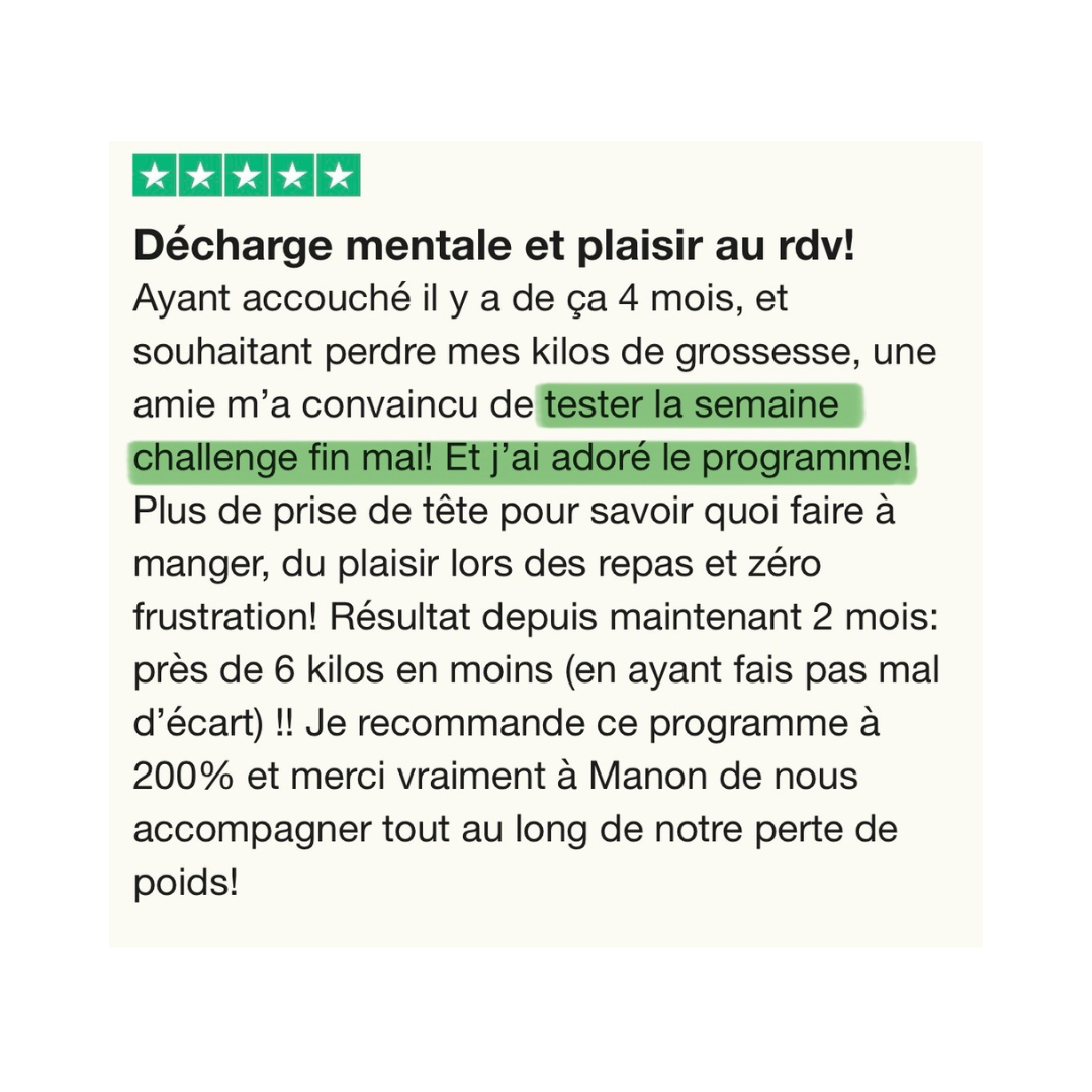 Pendant 7 jours complets, tu as tout ce qu’il te faut pour perdre tes premiers kilos et retrouver ta motivation :