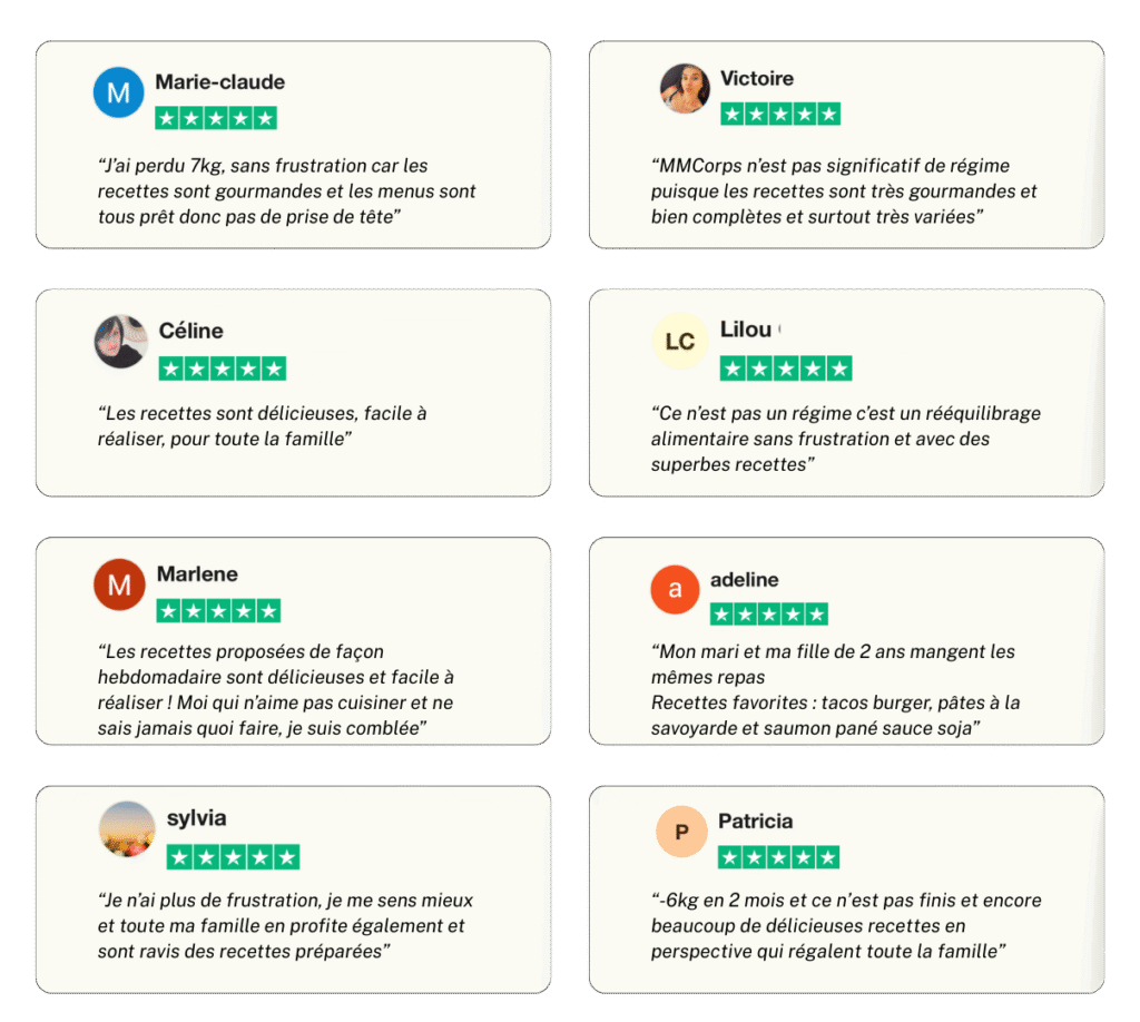 En suivant la méthode MMCorps, tu dis adieu a la charge mentale et au régimes compliqués pour retrouver du temps et atteindre ton objectif comme d’autres avant toi