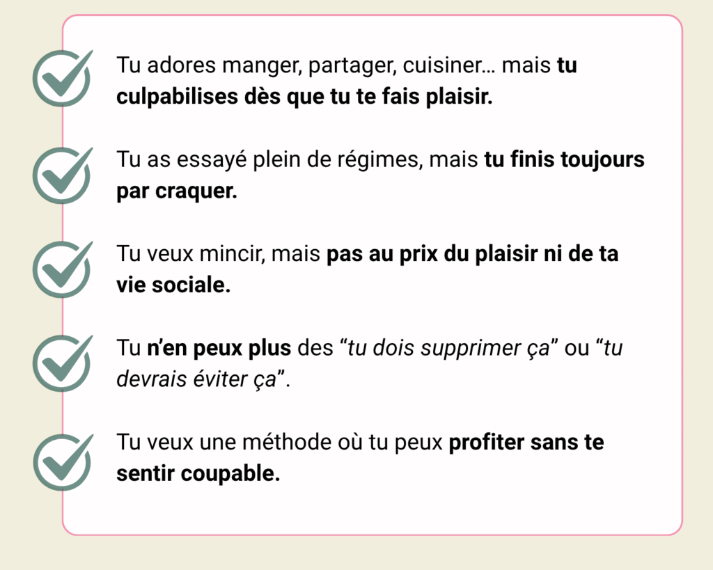 C’est en t’autorisant à manger ce que tu aimes, avec structure et équilibre, que tu vas enfin tenir sur la durée.