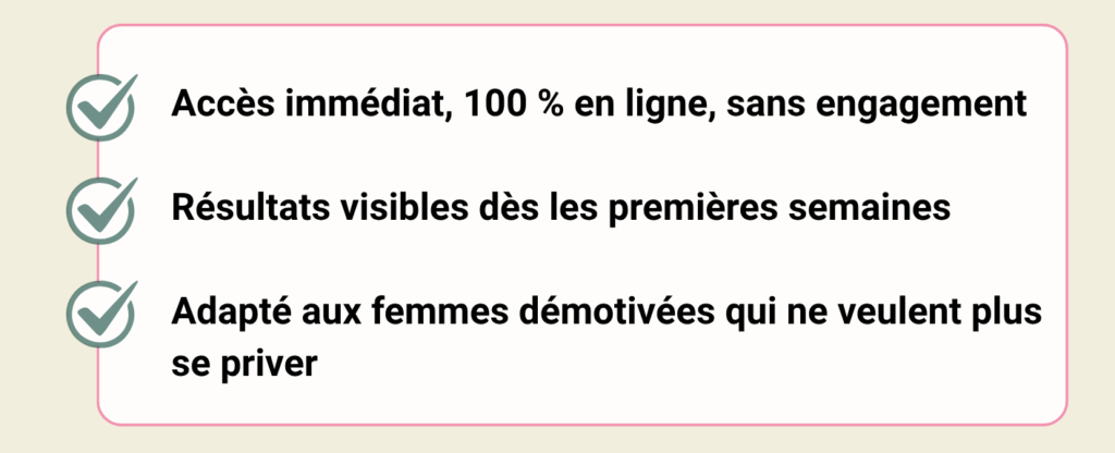 Perds en moyenne 4kg par mois, sans effort grâce à un programme flexible pensé pour les femmes gourmandes